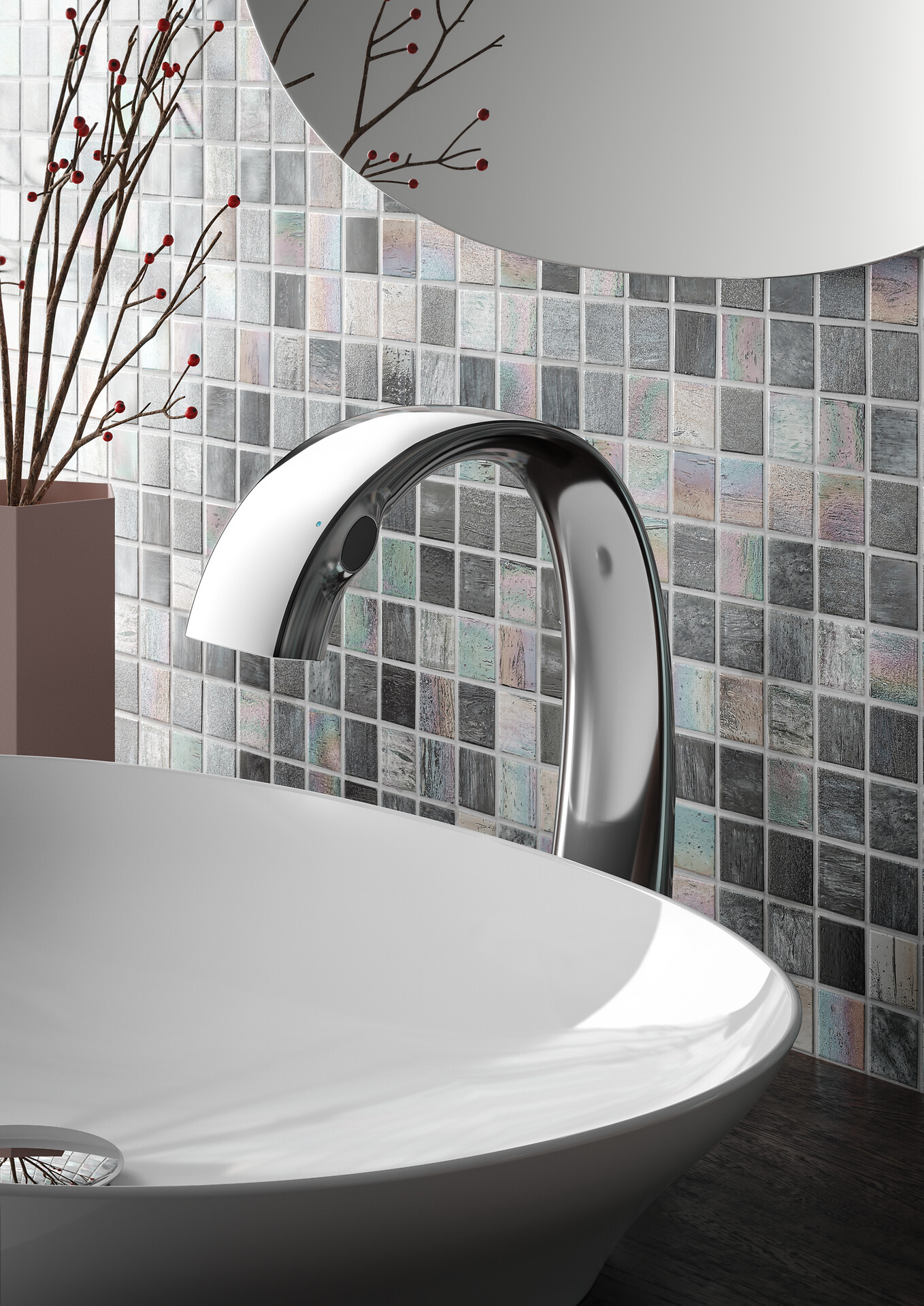 Am Ende des Armaturenauslaufs sitzt ein Mikrosensor – einer der kleinsten der Welt – der den Wasserfluss reguliert. Zum Einen registriert der Sensor die Bewegung der Hände und kann so die benötigte Wassermenge genau dosieren. So erkennt der Sensor zum Beispiel auch, wenn man zum Beispiel das Waschbecken putzt und kein Wasser laufen soll.
